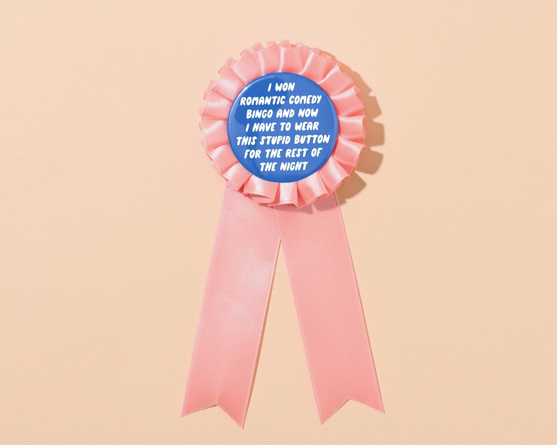 Who doesn't love a good old fashioned romantic comedy? Add some fun and interactivity to your rom-com movie marathon with Romantic Comedy Movie Bingo! Mark off classic rom-com clichés such as, "never been the right time," "sassy BFF or assistant," "she's wearing his shirt," and "big huge misunderstanding!" The game gets even sillier when the winner dons an award ribbon that states "I won Classic Romantic Comedy Movie Bingo and now I have to wear this stupid ribbon for the rest of the night." Just add your favorite classic romantic comedy! • Box set includes 36-page notepad with 6 different layouts, plus a fun little sticker sheet, and a rosette ribbon for the winner • Made in USA • Words and illustrations by Kiwi Schloffel