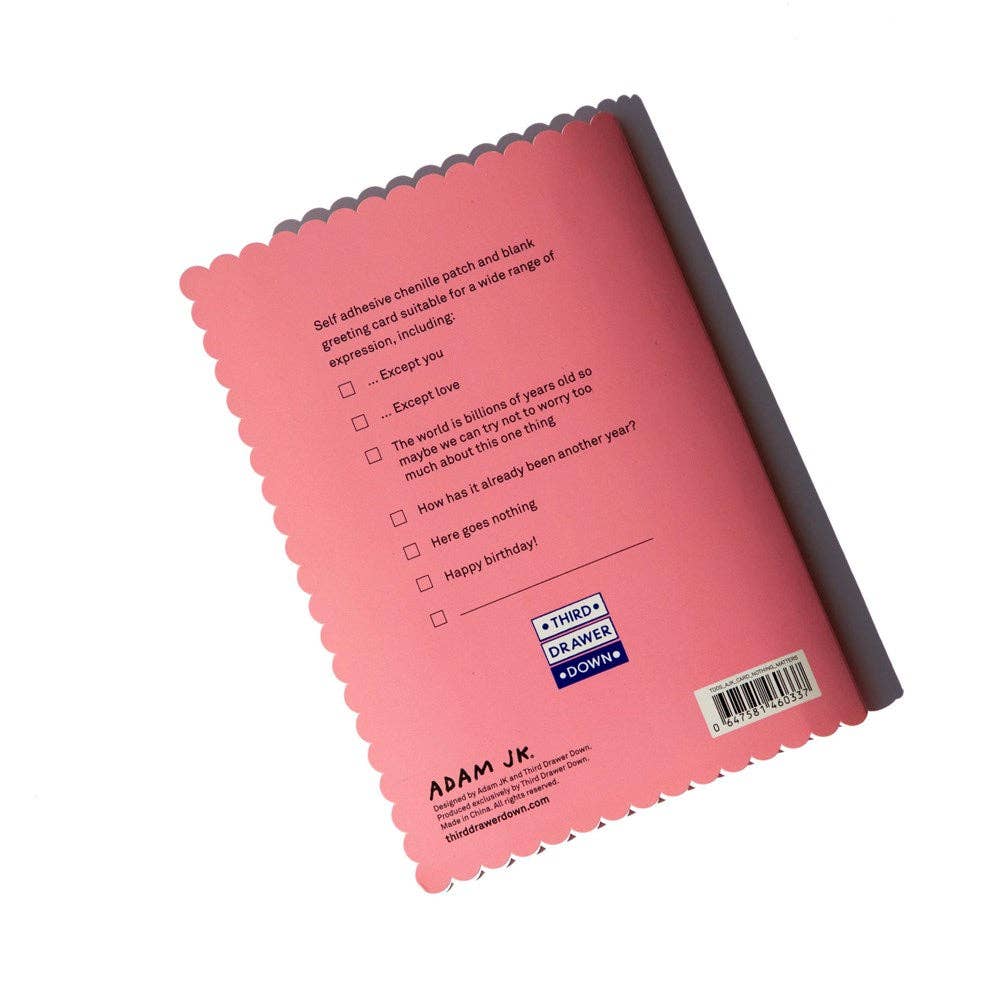 Nothing Matters Chenille Patch Gift Card x Adam JK Details Self-adhesive chenille patch and blank greeting card suitable for communication with the living, including: - Congratulations - Wishing you a speedy recovery - Wow you really did that - I'm grateful we're both here - Happy Birthday! - ____________ About the artist Adam J. Kurtz (aka Adam JK) is a designer, artist, author and speaker whose illustrative work is rooted in honesty, humor and a little darkness. His books have been translated into over a dozen languages. Kurtz speaks frankly about channeling human emotion into our art, and generally just trying to be more okay with whatever we’ve got. Specifications - 17.5 x 12.5 cm