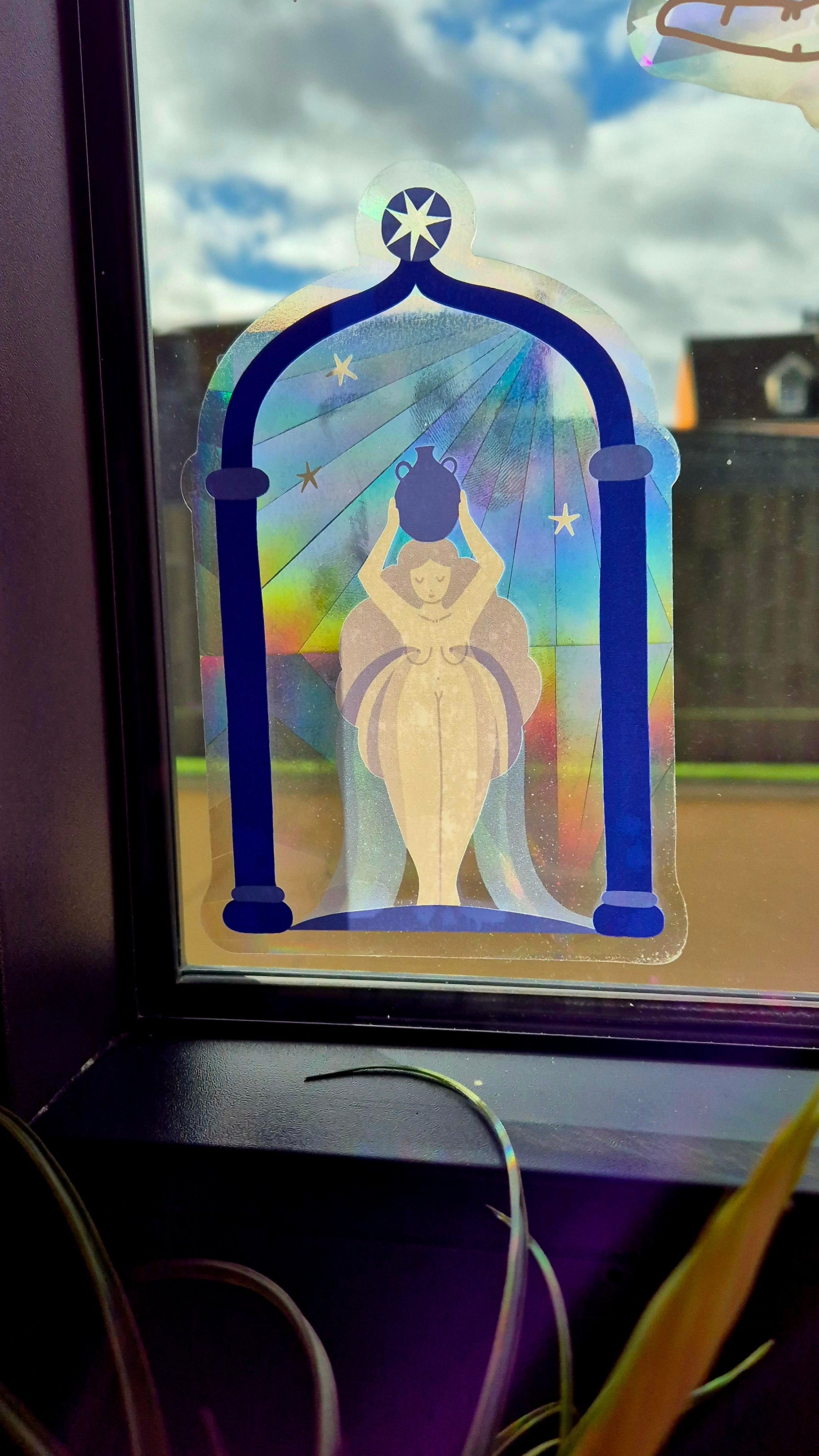 - Once you've placed it exactly where you want it, gently squeeze out the excess water and airbubbles, making the sticker stick to the glass. The sticker may look milky but this will clear up once the water has dried (which can take a few days)