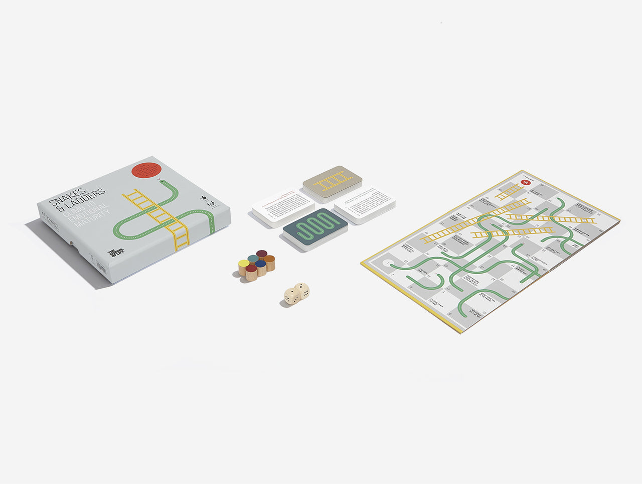 - The board is accompanied by two packs of cards: one with the snakes on the back, one with ladders on the back. Shuffle both packs before starting the game. If your counter lands at the bottom of a ladder on the board, pick up one of the ladder cards and read it out to the group: it’ll specify one of the stages of emotional maturity – and ask you a big question. Answer it, then move up to the top of the ladder.